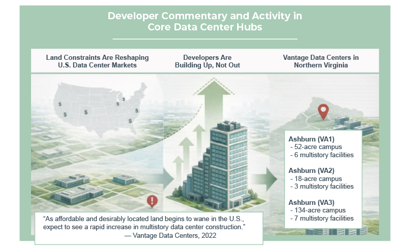 2. Buildings are larger, taller and heavier. Structures continue to expand in footprint and height across industrial, manufacturing, warehousing, health care and multifamily. Heavier loads and larger building pads increase settlement risk, introduce inconsistent soil profiles and require more sophisticated ground reinforcement. Data centers are a prime example. As land costs rise in key hubs, owners are constructing multistory, high-load facilities on constrained sites, driving sustained need for ground improvement and deep foundation systems.